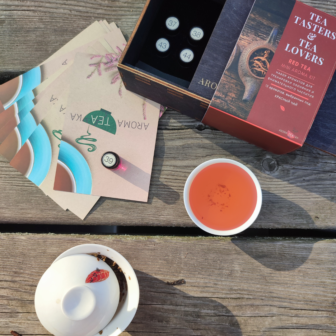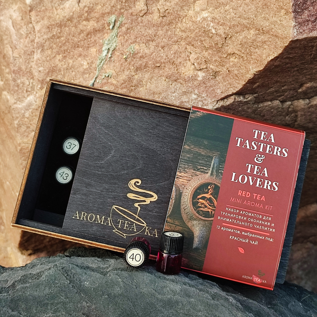 Набор ароматов создан, исходя из молекулярных рифм с красным (черным) чаем — в ароматах те же вещества, что встречаются в аромате чая, что позволит углубить навыки восприятия чая.